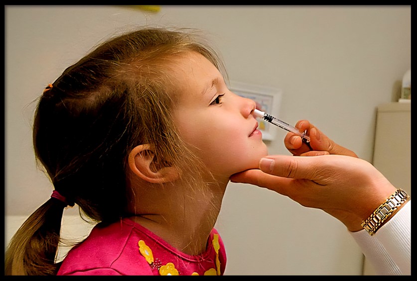 フルミストは弱毒化したインフルエンザウイルスを使った生ワクチンです。 鼻腔に噴霧して投与します。 注射に伴う痛みはありません。
